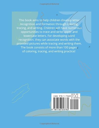 This book aims to help children develop letter recognition and formation through coloring, tracing, and writing. Children will have numerous opportunities to trace and write upper and lowercase letters. For developing word recognition, they can associate words with the provided pictures while tracing and writing them. The book consists of more than 100 pages of coloring, tracing, and writing practice!